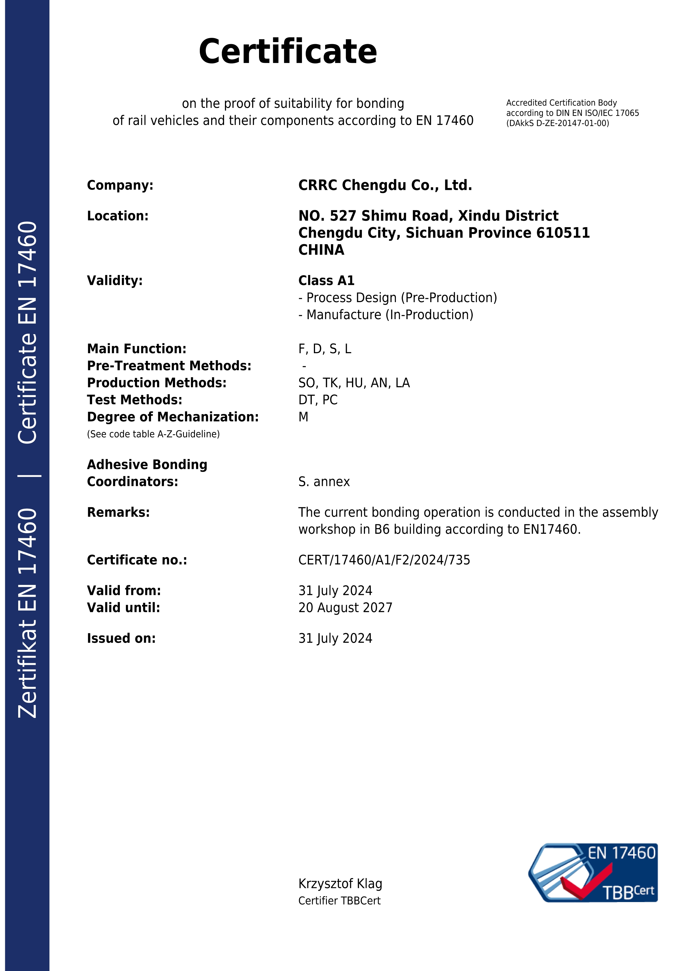 EN17460粘接質量管理體係證書