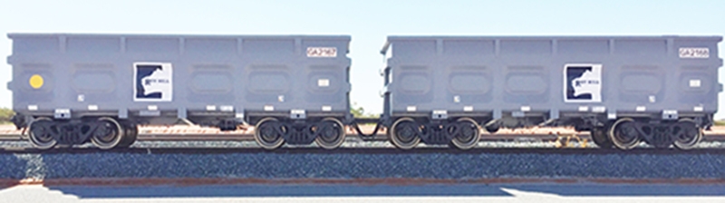 gaikuangshichangcheshiyingzaiaodaliyazhunguixianlushangyunxing,zhuyaoyunshukuangshi。xiehuofangshiweifanchejixiehuo。chezuyouliangliangkuangshichangchetongguoqianyinganlianjie,yiliangweizhuche,yiliangweifuche。cheliangzhuyaoyoucheti、牽引緩衝裝置、製動裝置、轉向架、塗裝與標記等組成。