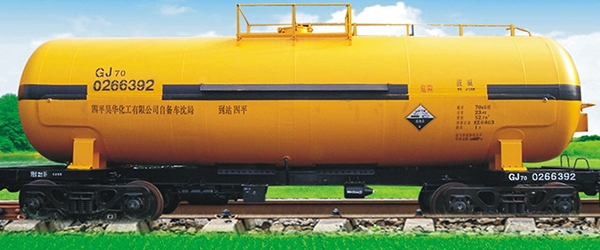 GJ70型液堿罐車載重70t,軸重23t,總容積54.3m3,商業運行速度120km/h,主要用於裝運30%及以上濃度的液堿,裝卸方式為上裝上卸。該車采用有中梁結構,主要由罐體、底架、罐與底架連接、加溫套、製動裝置、端梯及走台、17型E級鋼車鉤、大容量緩衝器、轉K6型轉向架等組成。