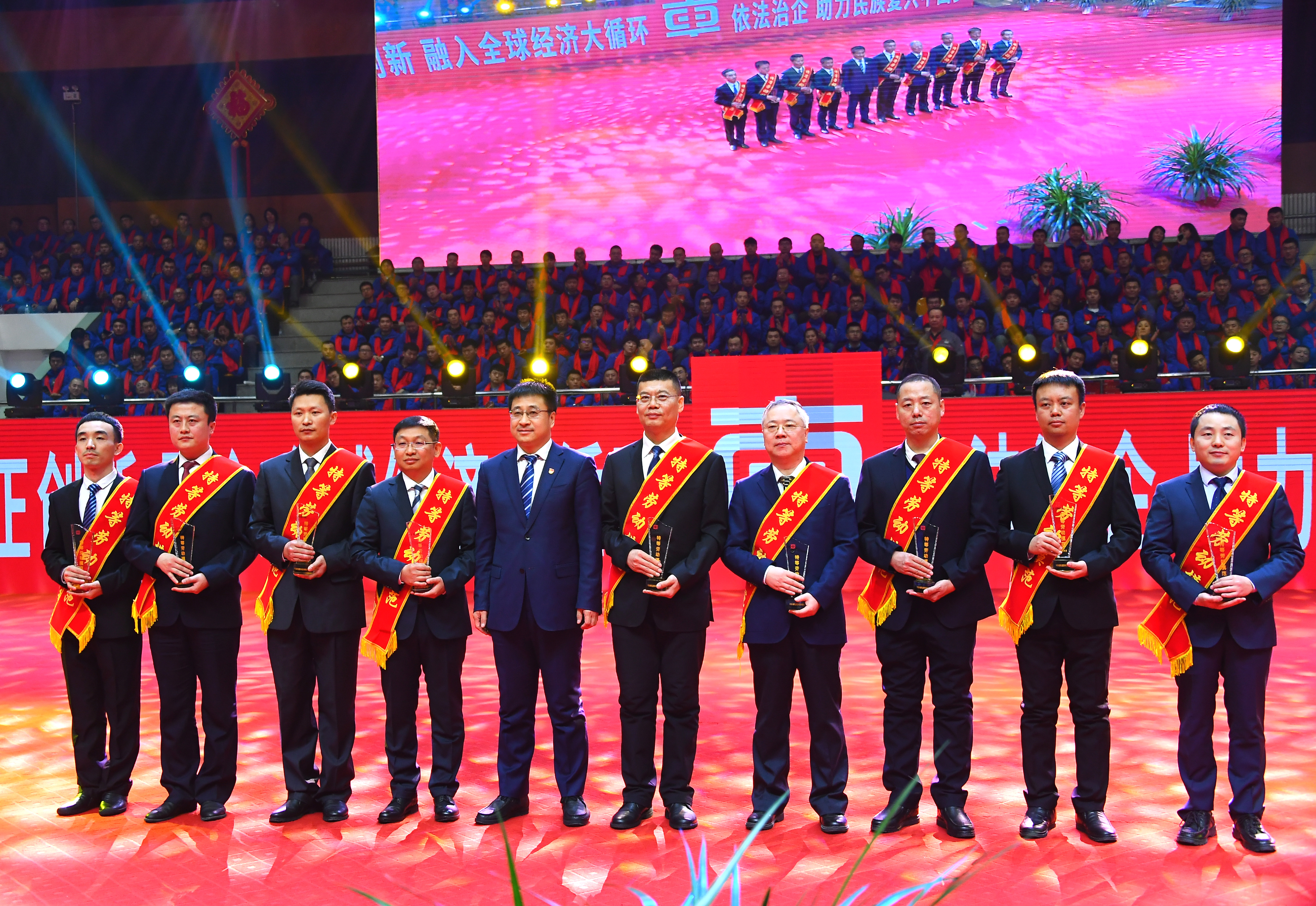 1月17日,農曆小年,下午3點,長客體育館紅燈高懸,鮮花簇擁,處處洋溢著歡歌笑語。公司在這裏隆重召開中車長客股份公司2019年度總結表彰大會,共同盤點一年來辛勤耕耘的豐碩成果,突出表彰各條戰線的先進典型,努力營造“學趕先進、爭做先進”的濃厚氛圍。公司黨委書記、董事長王潤,總經理王鋒等高管,以及獲得2019年度公司突出貢獻獎、特等勞動模範、勞動模範、先進單位的代表,公司所屬各單位的領導和部分職工參加大會。會議由黨委副書記、工會主席王獻紅主持。