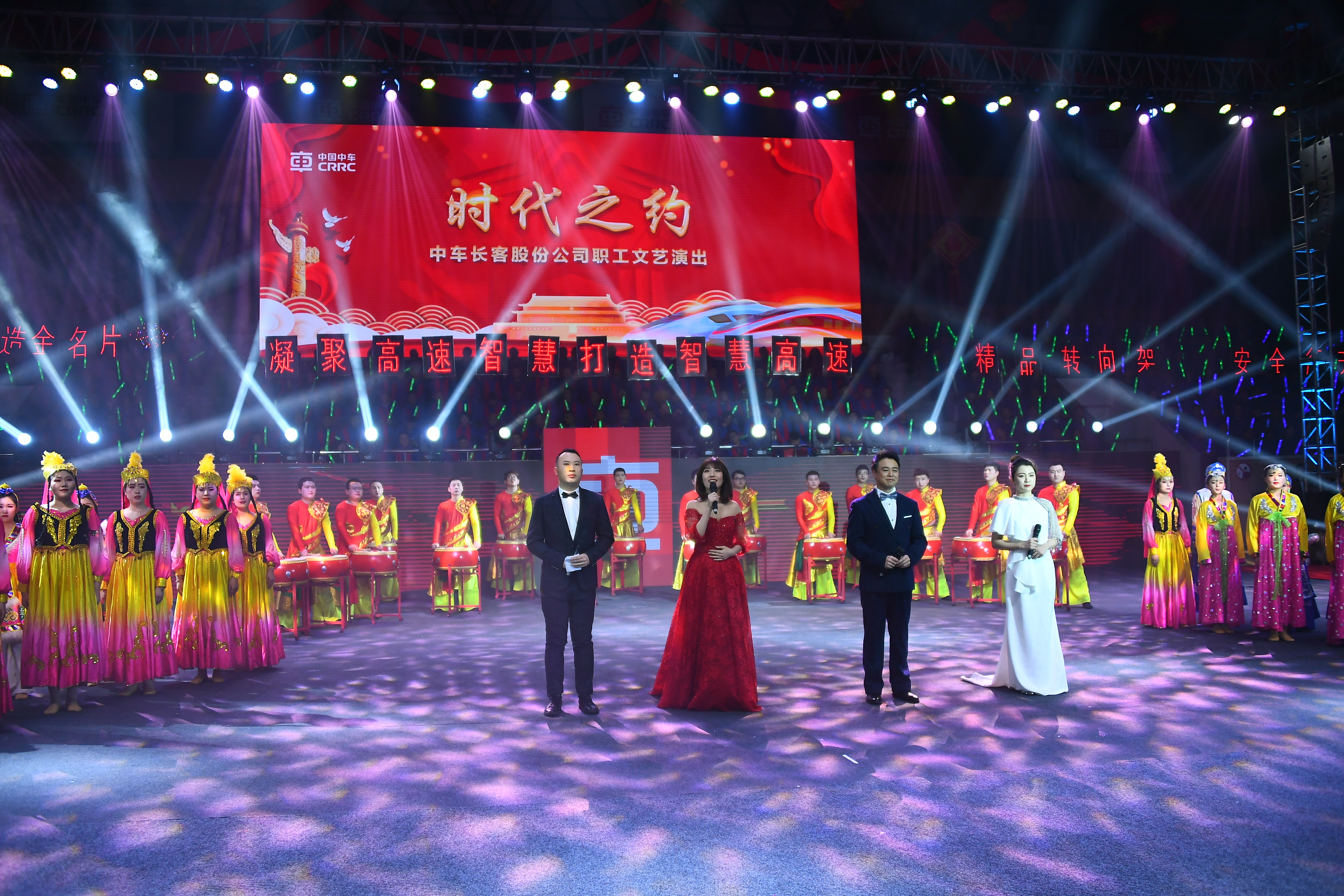 隨後,職工自編、自導、自演的新春文藝演出《時代之約》在舞蹈《盛世歡歌》中拉開序幕,節目共分為禮讚新時代、奮進新時代、逐夢新時代三個篇章,講述長客人與時代的約定。從情景劇《天安門觀禮》再到吉他演唱《讚讚新時代》,從舞蹈《時代浪潮》到男女對唱《新的天地》,從古箏《逐夢芳華》再到快板《城鐵丹心五十年》,整台節目運用豐富多彩、形式新穎的藝術形式,謳歌了公司員工與奮鬥相約,與拚搏相約,與祖國共奮進,與時代共成長的發展主旋律。