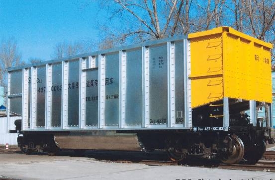 C80型鋁合金運煤敞車是大秦線2萬噸重載列車運輸煤炭用的專用敞車。該車能與秦皇島煤碼頭的三、四期翻車機及附屬設備相匹配,實現不摘鉤連續翻卸作業;並能適應環形裝車、直進直出裝車、解體裝車作業及運行時機車動力集中牽引要求。