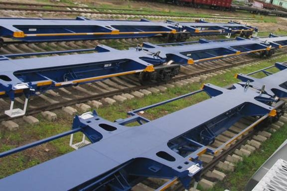 5單元集裝箱關節車是齊車公司根據合同及技術規範的要求為澳大利亞PN公司設計製造的鐵路集裝箱貨車。目前我公司生產5單元集裝箱關節車91組(455 輛)在澳州境內運行,時速115km/h,年運行裏程達到35萬公裏。該車投入運用,運行品質良好,給用戶帶來巨大的經濟效益和社會效益。