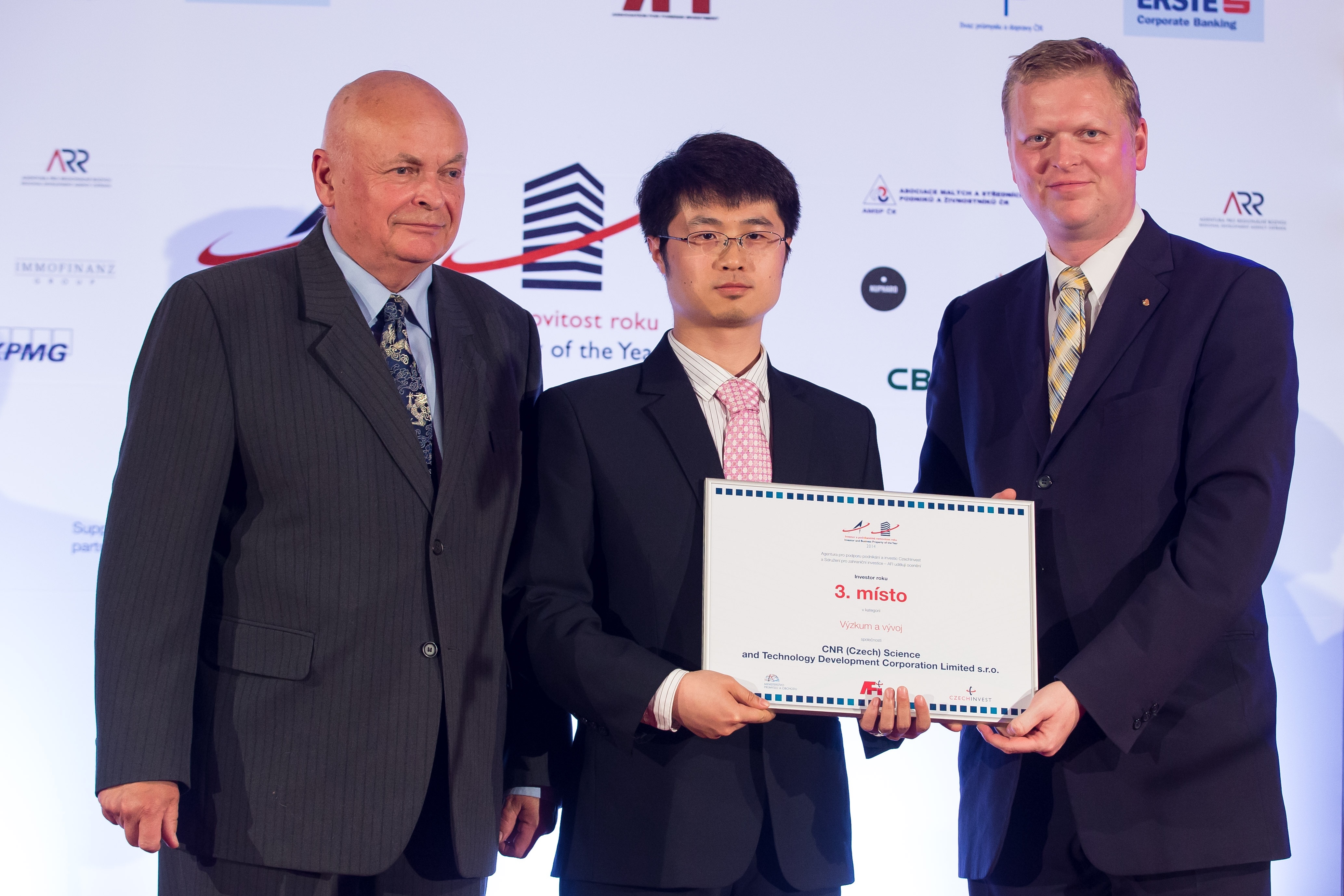 5月28日,在捷克佐芬宮大會堂,中國中車旗下北車(捷克)科技發展有限公司被捷克政府評為科技研發類優秀外資公司第三名殊榮,接受了捷克共和國主管科技的副總理帕維爾•別洛布拉迪科頒發的優秀外資合作獎。