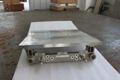 產品技術標準及數值: 液體額定流速:25 L/min 液體入口最高溫度:58 °C 水冷基板最大熱阻:7.4 °C/kW 工作壓力:4 bar/max 測試壓力:8 bar 工作溫度範圍:空氣 -40~+75 °C :液體 -40~+85 °C 最大儲存溫度(空氣): -40~+85 °C 尺寸:140*160 mm 產品說明: 該水冷板焊接方式全部采用真空釺焊工藝,釺焊麵焊著率高,熱性能及可靠性全部滿足客戶的使用要求。