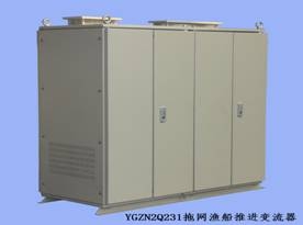 漁船電推進係統主要配套於拖網漁船、遠洋漁船、雙拖漁船、罩網漁船等船型,主要功能是實現船舶前進、製動、後退及起停運行;實現拖網及自航兩種運行工況的特性曲線輸出,保證船舶動力充足、快捷高效、安全可靠。主要由以下6大部件組成:變頻器、電動機、製動電阻、駕控台、平波電抗及整機網絡控製器。