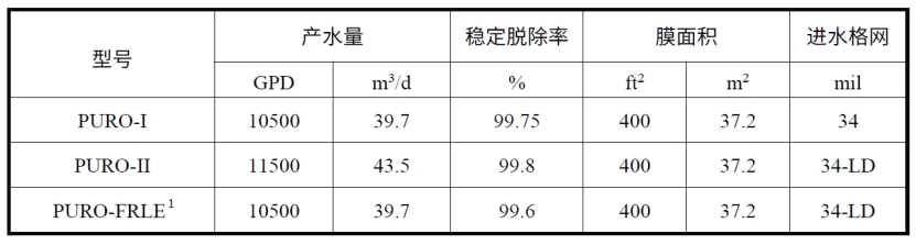 注:單支膜元件產水量±15%