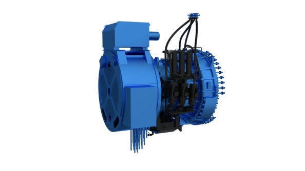 產品概述:海上25MW齒輪箱采用三級行星結構、輸入端與主軸係集成方式,“主軸總成-齒輪箱-發電機”的全柔性係統分析,實現了多行星輪係均載適配設計等技術突破。該款齒輪箱具有高扭矩密度、高可靠性、易維護性等優勢。其額定扭矩可覆蓋至45500kNm,具有廣泛的環境適用性,可滿足市場大葉片、大速比、高扭矩密度的要求。