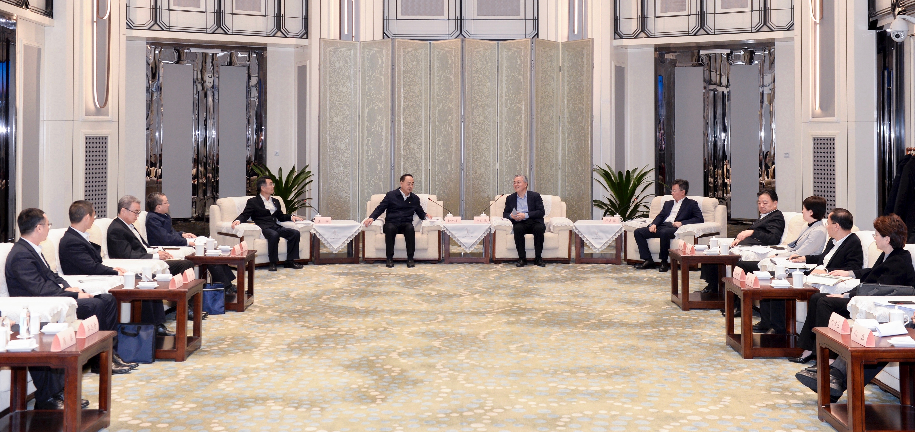12月11日,中國中車集團黨委書記、董事長孫永才,在南京與江蘇省委常委、南京市委書記周紅波,南京市代市長李忠軍座談交流。中國中車黨委副書記王銨,南京市委常委、江北新區黨工委書記、浦口區委書記陸衛東,副市長蔣敏一同參加。