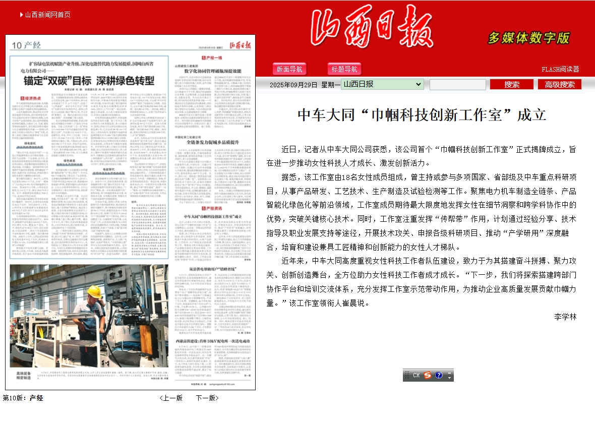 近日,記者從中車大同公司獲悉,該公司首個“巾幗科技創新工作室”正式揭牌成立,旨在進一步推動女性科技人才成長、激發創新活力。