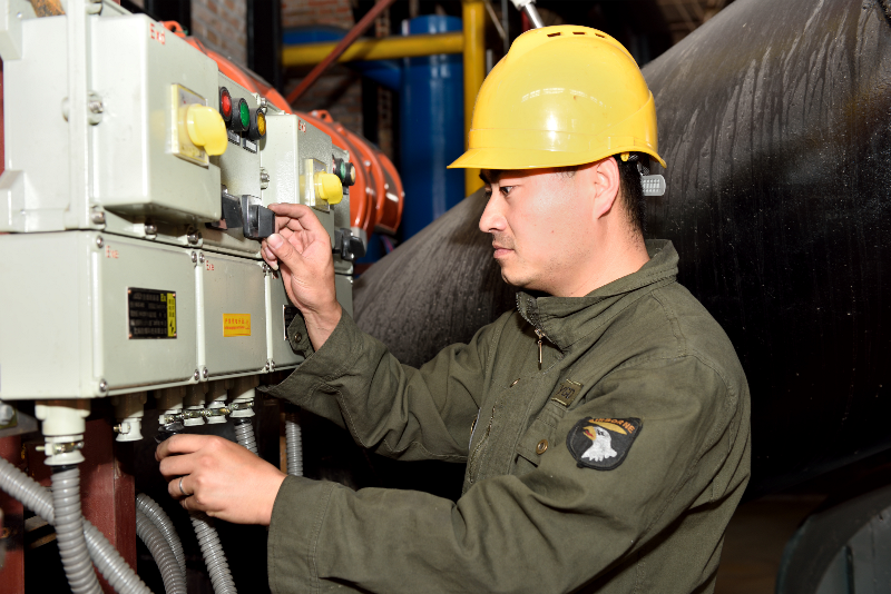 新廠軟水站由於設計原因,操作者隻能進行單一方向的控製操作,不方便也不安全;活化爐出料後經過多條傳送帶運到篩分包裝車間,傳送過程中粉塵四處飛揚、烏煙瘴氣,麵對這樣的環境,影響員工的安全健康;從低壓室送出去的電源線有很多線頭裸露在外,存在很大的安全隱患……。安全無小事,麵對各種問題隱患,郭楨不等不靠、主動請纓解決處理,為新廠安全調試生產做出了貢獻。