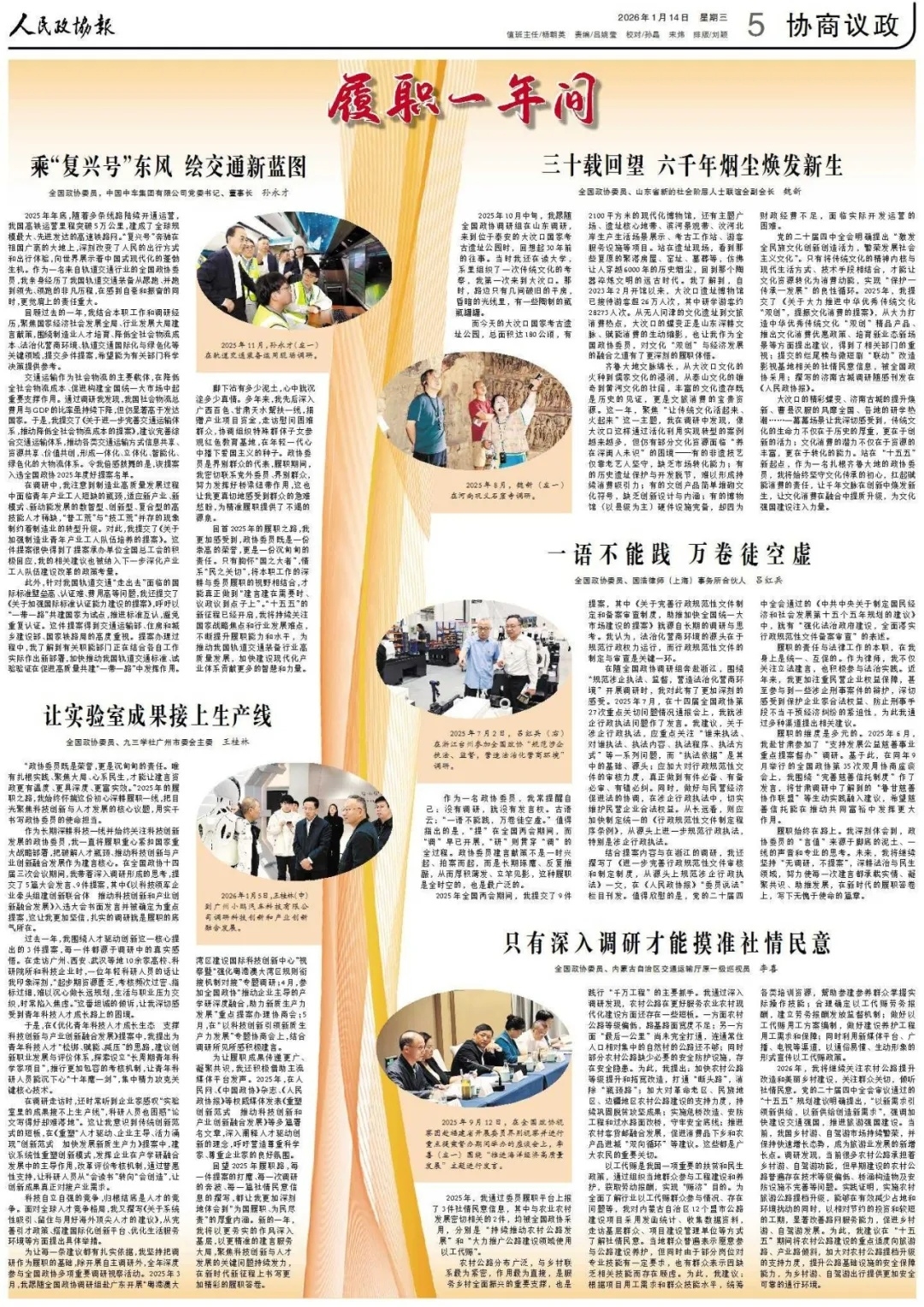 Looking back on my work in 2025, I have come to appreciate even more clearly that the role of a CPPCC member represents not only an honor, but a significant responsibility. By aligning professional expertise with public service and focusing on real needs and practical solutions, meaningful contributions can be made. As the 15th Five-Year Plan period begins, I will continue to focus on strategic priorities and industry challenges, enhance the quality of my policy work, and contribute practical insight to support the high-quality development of the rail transit equipment industry and the modernization of the industrial system.