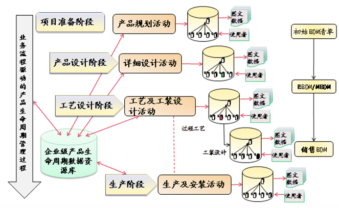 術,不僅對產品全生命周期過程數據進行管理,同時也沿著企業價值鏈,圍繞著項目管控、