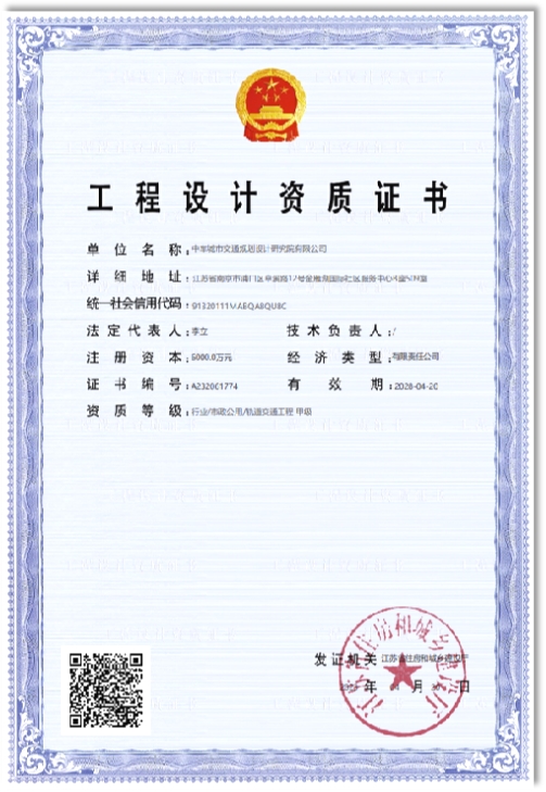 2023年4月,中車規劃設計院取得軌道交通甲級資質證書
