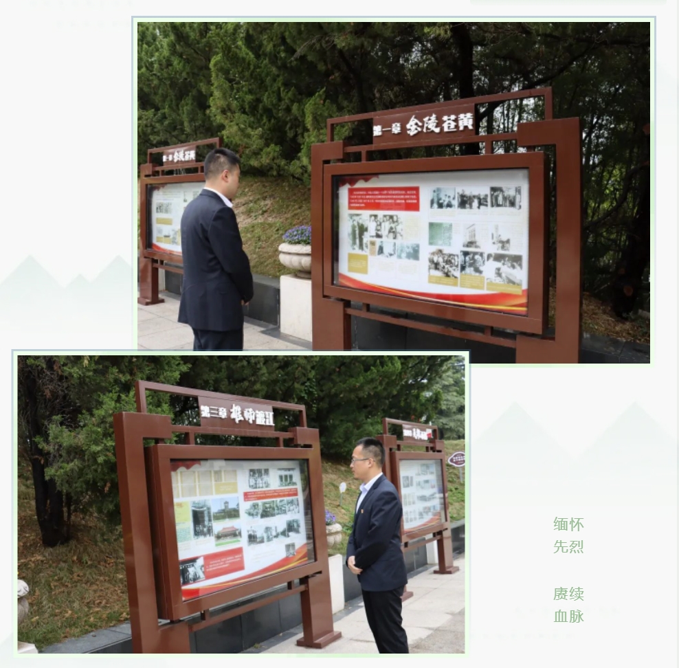 黨員代表簡鬆、李少浦緩緩前行,向英雄們敬獻花籃。黨委委員欒治國、李春宇上前整理花籃緞帶。全體人員肅立默哀,表達對烈士的崇高敬意和深切悼念之情。