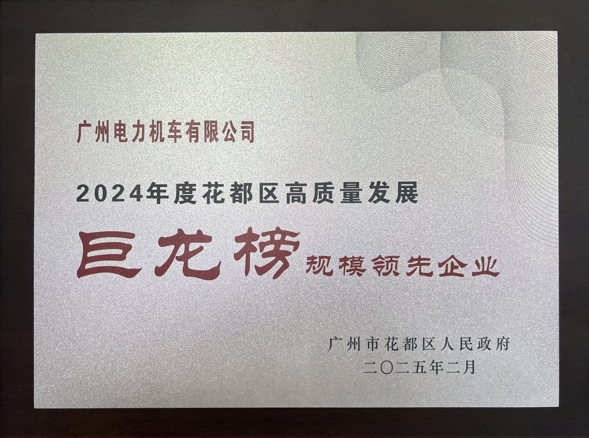 公司榮獲花都區2024年度高質量發展“巨龍榜”規模領先企業