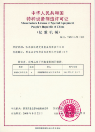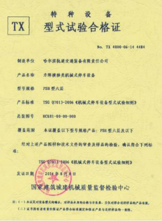 在立體停車設備方麵,公司獲得了製造許可證,主要產品:多層(六層及以下)機械式升降橫移式(PSH型)立體停車設備、二層升降橫移式立體停車設備、簡易升降式立體停車設備等。