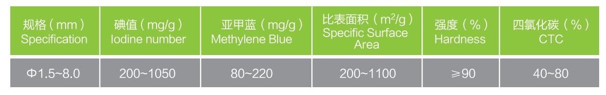 選用優質無煙煤為原料。成品柱狀活性炭微、中孔發達、比表麵積大、吸附能力強、機械強度高、可再生。廣泛應用於有毒氣體淨化、廢氣處理、工業和生活用水淨化等方麵。