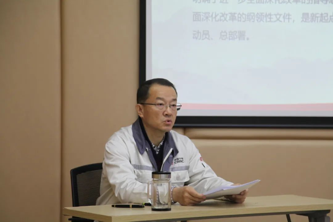 最後,會議號召公司全體要更加緊密地團結在以習近平同誌為核心的黨中央周圍,堅定擁護“兩個確立”,堅決做到“兩個維護”,深入學習貫徹落實黨的二十屆三中全會精神,以全麵深化改革為契機,用更加飽滿的姿態、更加昂揚的鬥誌、更加努力的幹勁,進一步推動公司高質量發展,為加快建成世界一流中車作出新的更大貢獻。