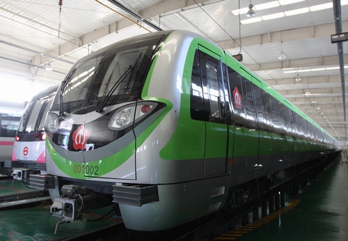 南京地鐵三號線是青奧會重要配套項目,是公司又一自主集成創新產品的成功實踐,項目車輛按照輕量化、標準化、模塊化、低噪音、高gao防fang火huo要yao求qiu進jin行xing設she計ji和he製zhi造zao。列lie車che采cai用yong全quan焊han接jie鋁lv合he金jin鼓gu形xing車che體ti結jie構gou,車che輛liang線xian條tiao明ming快kuai,色se彩cai鮮xian明ming,充chong滿man動dong感gan,充chong分fen體ti現xian了le人ren性xing化hua和he綠lv色se環huan保bao低di碳tan的de設she計ji和he製zhi造zao理li念nian。鼓gu形xing車che體ti結jie構gou使shi得de車che輛liang內nei飾shi空kong間jian更geng加jia寬kuan敞chang,客ke室shi座zuo椅yi前qian端duan距ju車che中zhong尺chi寸cun一yi邊bian比bi南nan京jing以yi往wang項xiang目mu大da了le10多(duo)公(gong)分(fen),增(zeng)加(jia)了(le)站(zhan)立(li)區(qu)的(de)空(kong)間(jian)。屏(ping)風(feng)造(zao)型(xing)簡(jian)潔(jie),使(shi)整(zheng)個(ge)客(ke)室(shi)內(nei)部(bu)氣(qi)流(liu)通(tong)過(guo)更(geng)加(jia)順(shun)暢(chang),視(shi)線(xian)無(wu)遮(zhe)擋(dang),同(tong)時(shi)車(che)輛(liang)側(ce)窗(chuang)高(gao)度(du)增(zeng)加(jia),車(che)輛(liang)內(nei)外(wai)部(bu)視(shi)野(ye)麵(mian)積(ji)增(zeng)大(da),更(geng)好(hao)的(de)提(ti)高(gao)了(le)車(che)輛(liang)通(tong)透(tou)性(xing)。為(wei)了(le)提(ti)高(gao)車(che)輛(liang)的(de)舒(shu)適(shi)度(du),南(nan)京(jing)地(di)鐵(tie)三(san)號(hao)線(xian)采(cai)用(yong)鋁(lv)蜂(feng)窩(wo)地(di)板(ban),此(ci)部(bu)件(jian)具(ju)有(you)減(jian)震(zhen)、隔音、降噪的作用,同時車輪上增加了降噪環,有效降低列車輪軌摩擦產生的噪聲,兩種部件的使用將大大增加車輛舒適度。