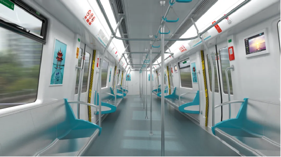車廂內采用42.7寸超大顯示屏LCD動態地圖,引入環形扶手及雙立柱扶手,設計更加人性化,為乘客提供更多的便利;空調溫度可根據季節、載客量等情況自動調節,增設緊急通風窗等,增加列車舒適性。