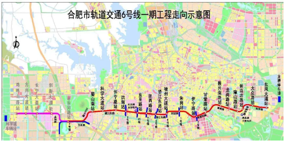 合肥6號線一期項目全長35.2千米,均為地下線,西起於開福寺,途經蜀山區、包河區、瑤海區和肥東縣,東止於龍塘站,線路大致呈東西走向。