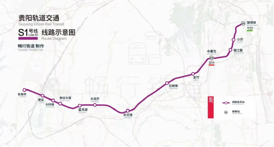 貴陽軌道交通S1線起點為貴安新區皂角壩站,終點為南明區望城坡站,經過貴安新區、花溪區(含經開區)、南明區3個行政區域。線路全長30.32公裏,其中地下線22.64公裏,高架及地麵線7.68公裏。