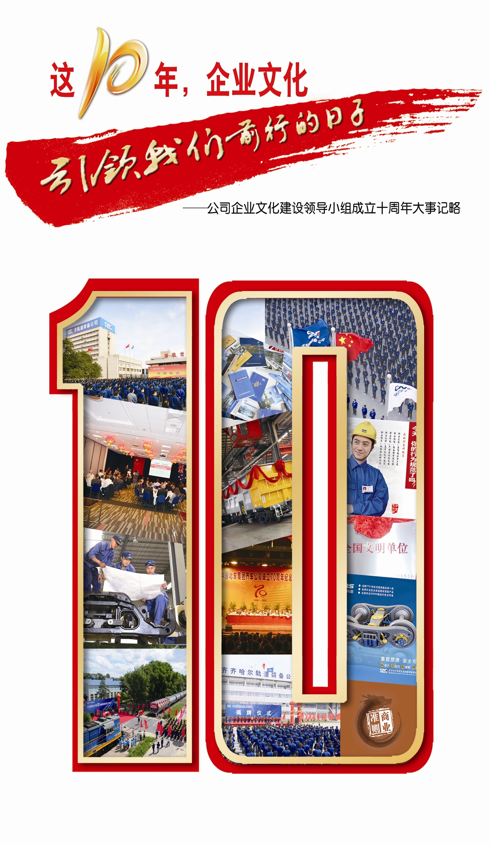 十(shi)年(nian)來(lai),公(gong)司(si)企(qi)業(ye)文(wen)化(hua)建(jian)設(she)深(shen)入(ru)開(kai)展(zhan),實(shi)現(xian)了(le)由(you)原(yuan)齊(qi)車(che)公(gong)司(si)理(li)念(nian)體(ti)係(xi)向(xiang)由(you)中(zhong)國(guo)北(bei)車(che)核(he)心(xin)理(li)念(nian)和(he)具(ju)有(you)自(zi)身(shen)特(te)色(se)的(de)行(xing)動(dong)綱(gang)領(ling)有(you)機(ji)結(jie)合(he)的(de)齊(qi)軌(gui)道(dao)裝(zhuang)備(bei)公(gong)司(si)理(li)念(nian)體(ti)係(xi)的(de)轉(zhuan) 變;由《職工行為規範》製度層麵要求和分散式宣貫向開展集中性、遞進式活動和突出崗位、工種個性化規範的行為文化建設的轉變;由齊車公司完善的形象文化體 係向中國北車形象文化體係並迅速提升形象影響力的轉變;由企業文化工作基本自行循環向生產經營多領域以及品牌建設、公共關係工作拓展融為一體不可或缺的轉 變。 公司先後榮獲全國文明單位、全國企業文化建設優秀單位、中央企業思想政治工作先進單位、中央企業企業文化示範單位稱號。