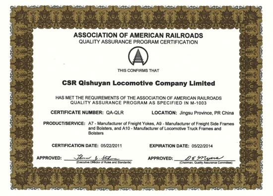 美國鐵路協會AAR M-1003質量保證體係認證證書