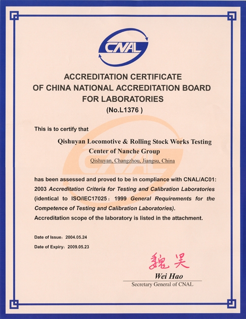 Accreditation Certificate of China National Accreditation Board for Laboratories