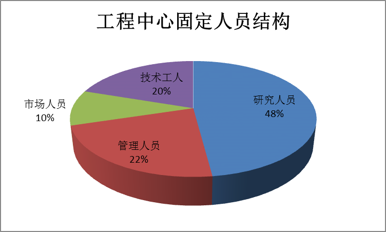 工程中心現有固定人員121人,教授級高工4人、高級工程師12人、工程師(經濟師)40人、高級技師10人,技術7人。