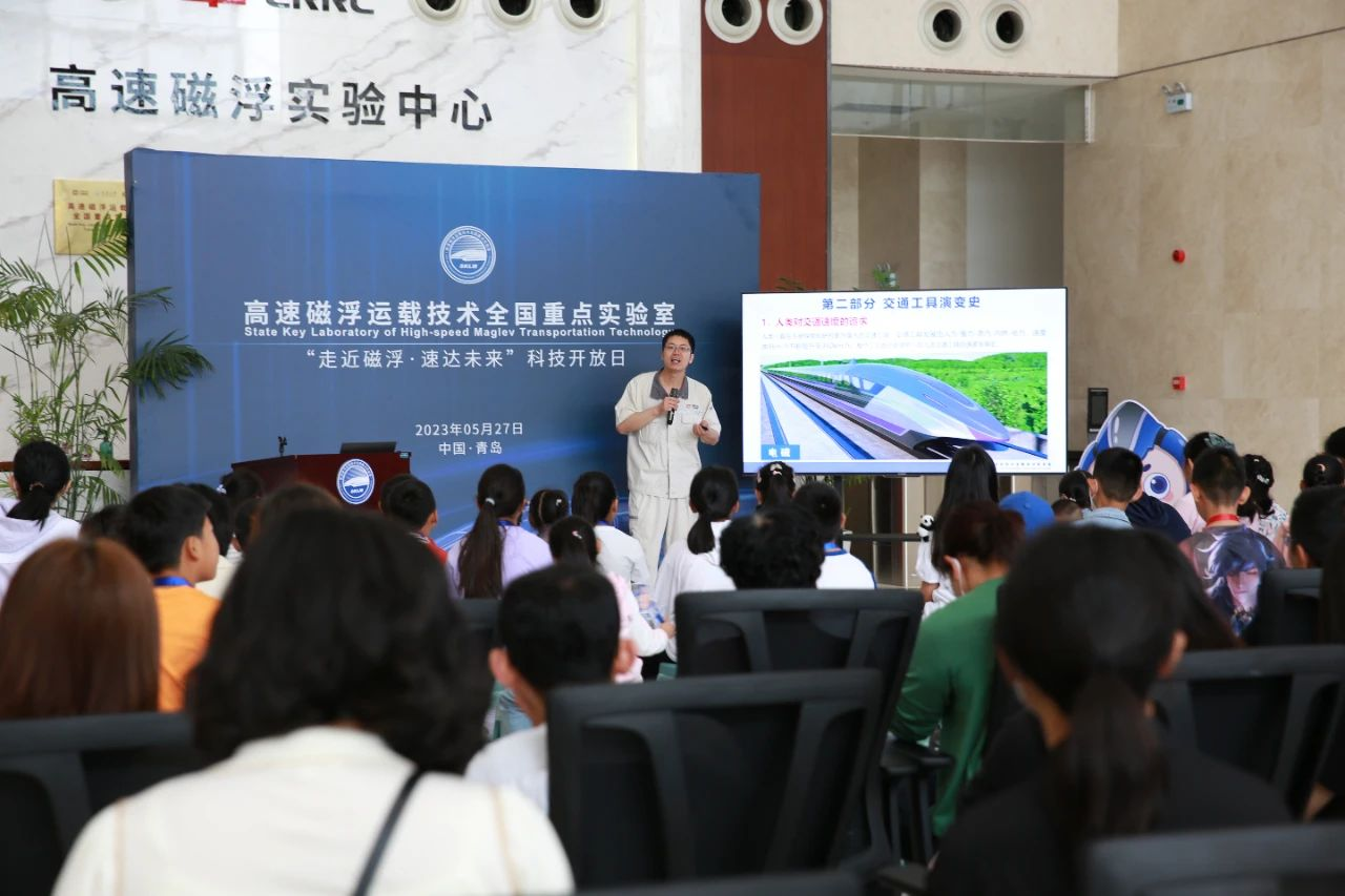 為促進高速磁浮運載技術全國重點實驗室科學研究與科學普及協調發展,進一步激發青少年學習科學知識的熱情、弘揚科學精神、感受科學魅力,2023年5月27日,中車青島四方機車車輛股份有限公司積極響應2023年科技活動周“熱愛科學 崇尚科學”的主題,舉辦了高速磁浮運載技術全國重點實驗室“科技開放日”活動。實驗室結合研究方向,以“走近磁浮 速達未來”為wei本ben次ci活huo動dong主zhu題ti,麵mian向xiang中zhong小xiao學xue生sheng和he社she會hui公gong眾zhong開kai放fang,旨zhi在zai以yi全quan國guo重zhong點dian實shi驗yan室shi為wei依yi托tuo,展zhan示shi高gao精jing尖jian磁ci浮fu技ji術shu和he科ke技ji創chuang新xin成cheng果guo,激ji發fa青qing少shao年nian對dui磁ci浮fu科ke學xue技ji術shu的de興xing趣qu和he愛ai好hao。來lai自zi青qing島dao市shi的de50多名中小學生,走進國重實驗室,開啟了一場別開生麵的“磁浮之旅”,實地參觀體驗時速600公裏高速磁浮,探索磁浮科技奧妙,零距離感受高速磁浮的科技魅力。