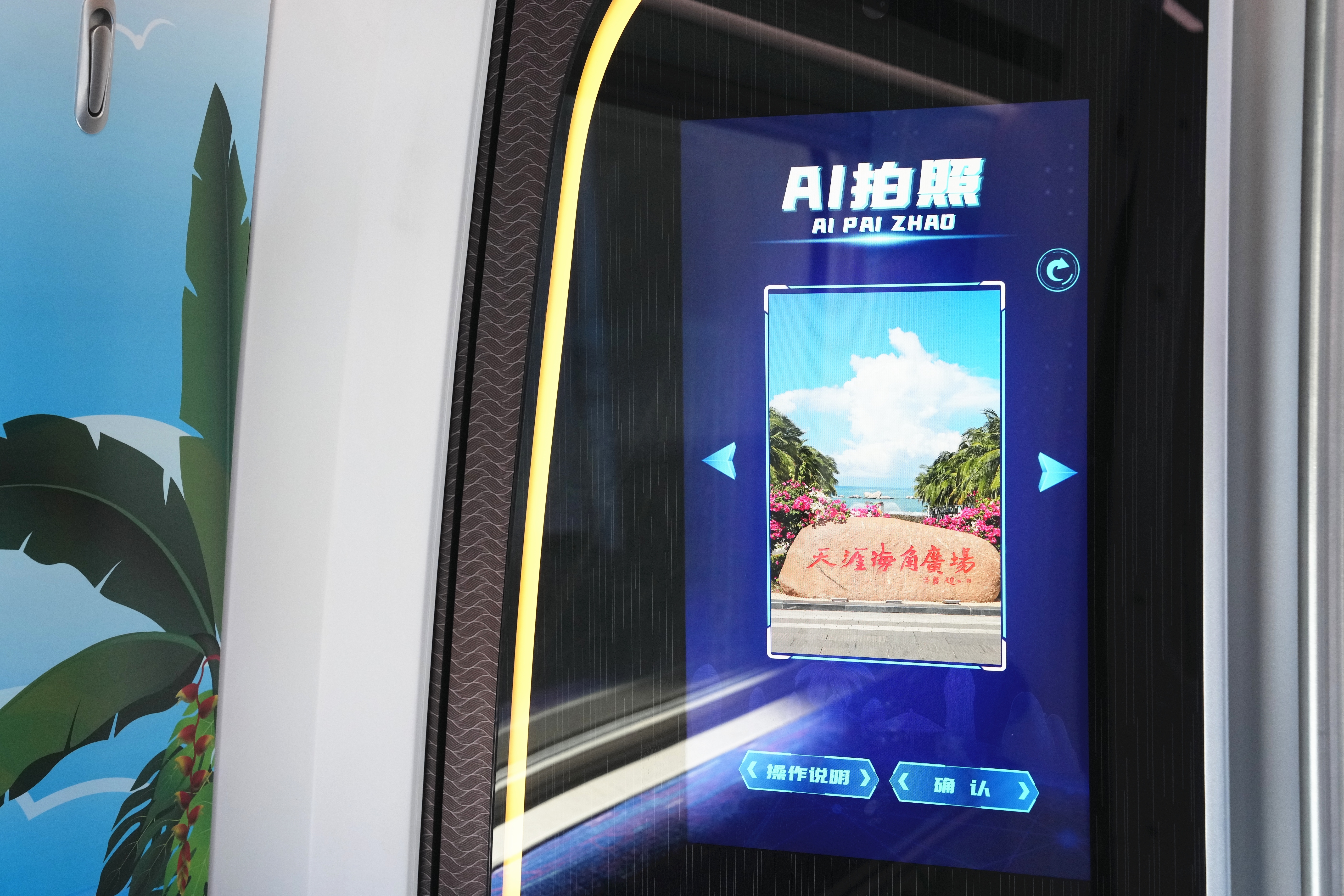 主題車廂還首次設置AI智能拍照打卡機,供旅客在車廂內自助拍照,解鎖旅行打卡新方式。AI拍照機可一鍵切換景點背景、年代穿梭、卡通修飾等拍照模式,為乘客帶來新鮮有趣的打卡體驗。