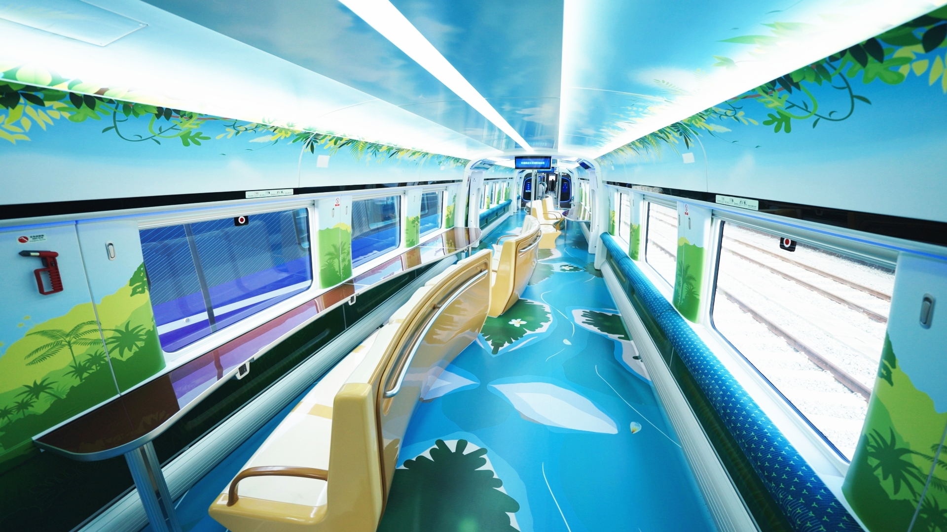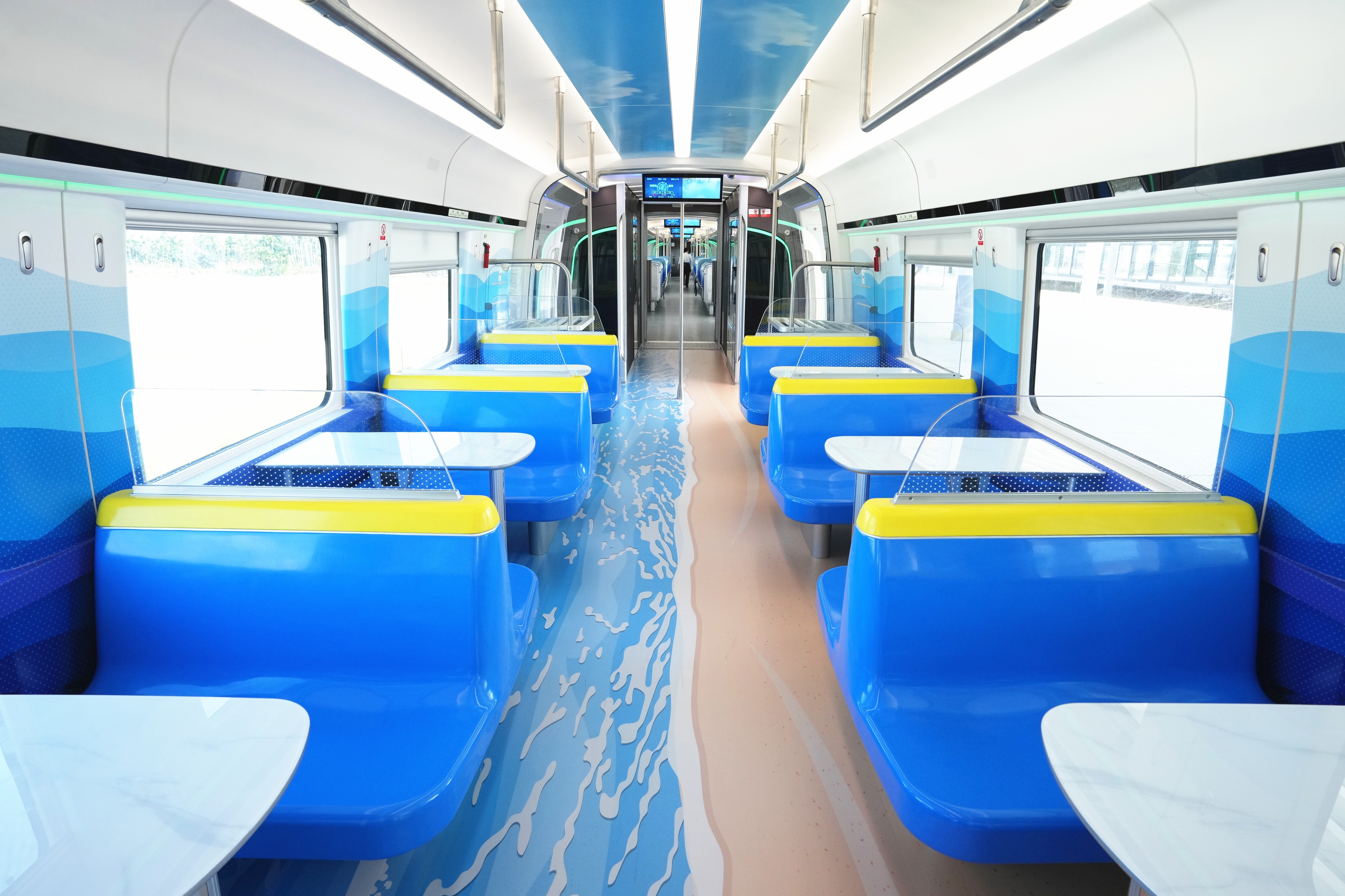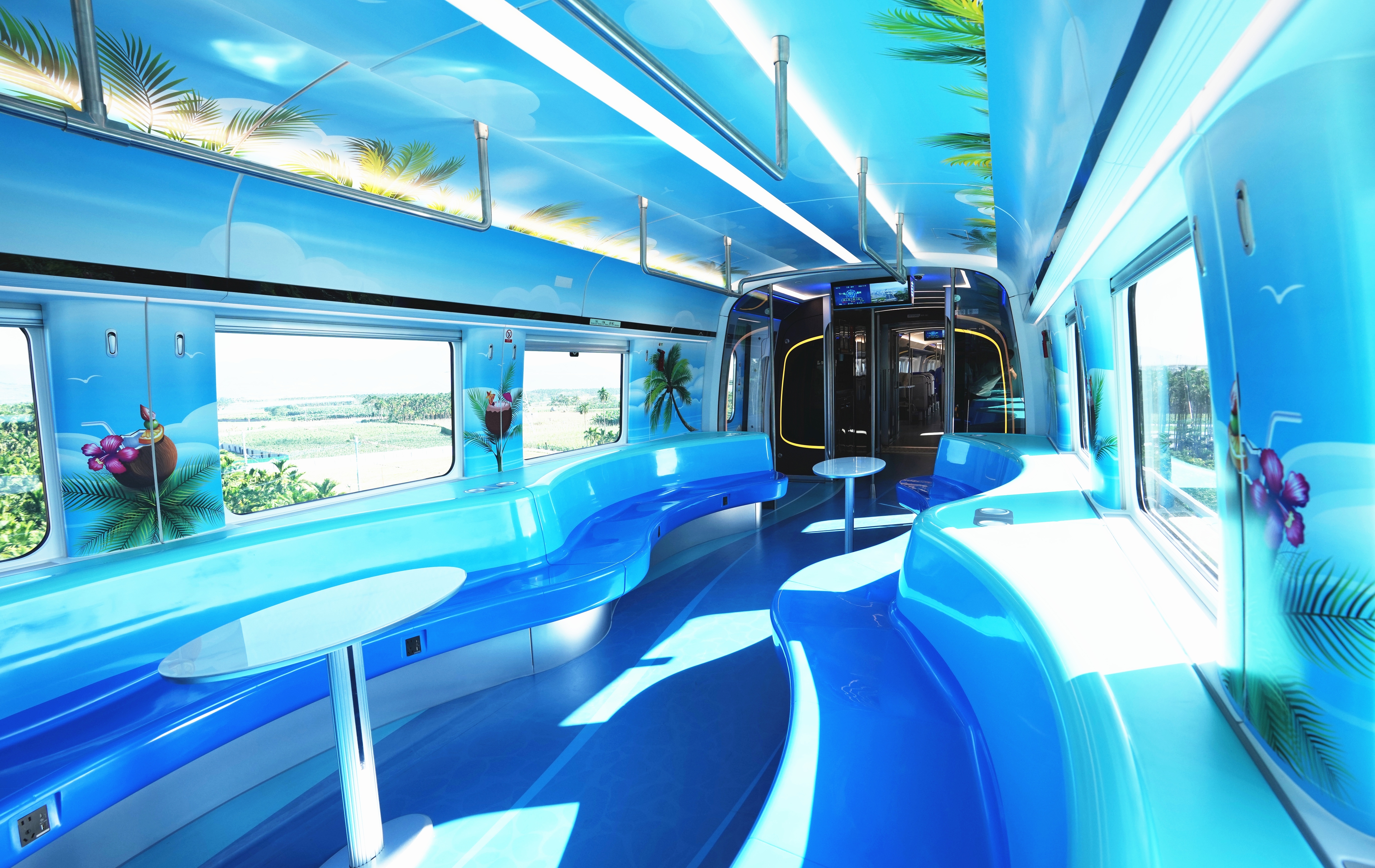 踏足充溢著金色沙灘和湛藍海水的“活力海洋”主題車廂,仿佛徜徉在色彩斑斕的熱帶海洋。