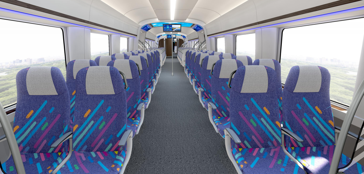 最高運營速度160km/h,4輛編組,C型城際市域列車,可與幹線鐵路互聯互通,具備快起快停、快速乘降、大載客量、綠色智能等技術特點,可高速持續運轉,也可頻繁起停,列車頭尾車設置2套、中間車設置3套大開度單扇塞拉門,符合城際軌道交通潮汐客流、大運量特點。