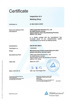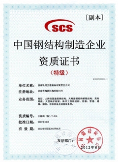 中國鋼結構製造企業特級資質 2014年度中廣核優質供應商 2015年度中廣核優質供應商