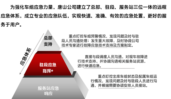 中車唐山公司配件中心采用“1+5+N”的管理模式進行業務管控,以唐山公司本部為中心,擴大配件中心運作範圍,與鐵路局共同建設北京、上海、廣州、西安、成都五個動車組配件中心,並依托五個動車配件中心,將業務範圍覆蓋各個配屬唐山公司平台動車組的配件二級庫。