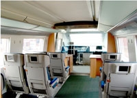 該動車組客室分一等車和二等車,其中全列提供旅客電視係統,一等車設有商務包間和旅客信息係統,旅客可選擇100餘套影視節目,同時可進行網上遊戲和相關旅遊信息的查詢。 動車組內部裝修簡潔、明快、舒適、優美,全列各門均為自動拉門,為旅客提供安全舒適的旅行環境。