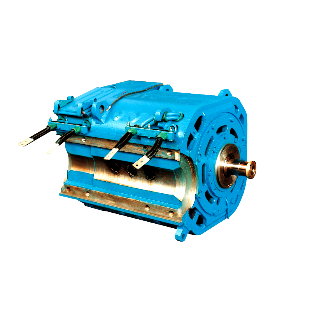 DF7G內燃機車,采取4極、主極平繞、單刷杆、壓簧、焊接機座設計。