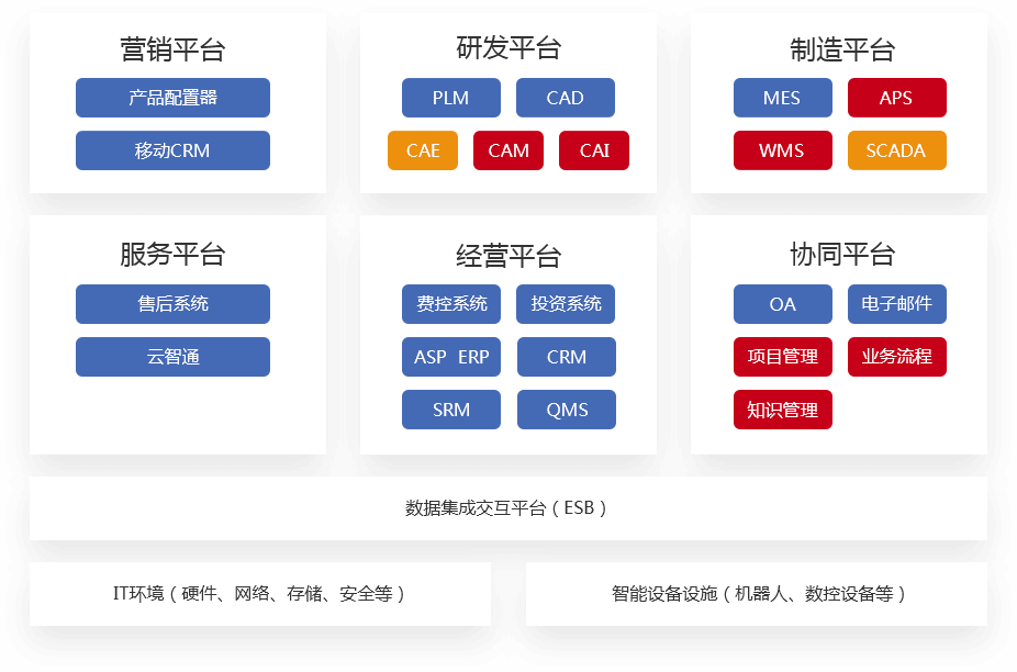 通過PLM、ERP、CRM、SCM和MES五大核心係統,從而實現車間設備、生產、人員、質量、物料、環境等方麵的全流程的智能化、綠色化和信息化管理。達到製造資源數字化、生產過程數字化、現場運行數字化、質量管控數字化、物料管控數字化、生產進度可視化、數據采集實時化、生產管理無紙化、生產物流精益化目標。