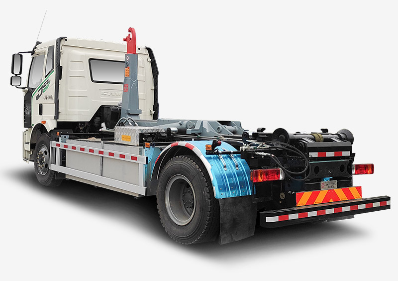 全過程可由駕駛員一人在車內或者車下完成,方便經濟; 電控液實現液壓控製,配置平衡閥,保障動作平穩,且具有互鎖功能,防止誤操作;配置機械自鎖鎖緊裝置,防止箱體在裝卸和運輸過程中滑落。