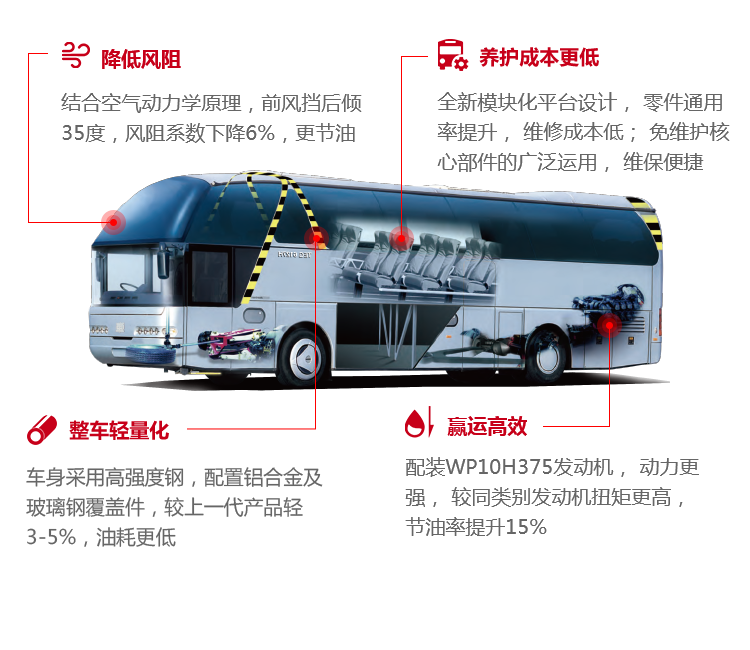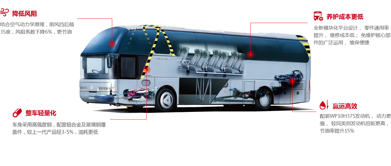 Independent suspension front axle and A-shaped rear axle reduce the jolt and swing of the vehicle; the skin of vehicle with prestress hot tensioning adhering technology and vehicle foaming technology make noise lower, which effectively improves the driving and riding experiences.