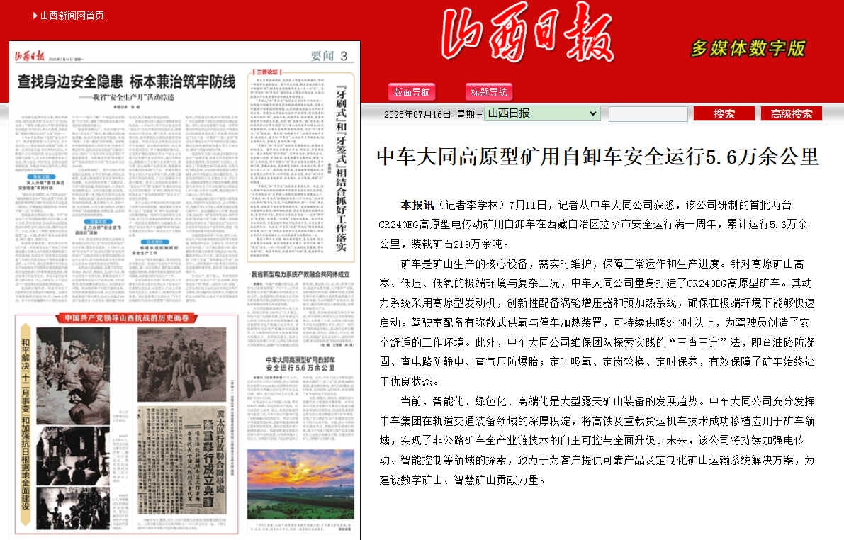 礦車是礦山生產的核心設備,需實時維護,保障正常運作和生產進度。針對高原礦山高寒、低壓、低氧的極端環境與複雜工況,中車大同公司量身打造了CR240EGgaoyuanxingkuangche。qidonglixitongcaiyonggaoyuanxingfadongji,chuangxinxingpeibeiwolunzengyaqiheyujiarexitong,quebaozaijiduanhuanjingxianenggoukuaisuqidong。jiashishipeibeiyoumisanshigongyangyutingchejiarezhuangzhi,kechixugongnuan3小時以上,為駕駛員創造了安全舒適的工作環境。此外,中車大同公司維保團隊探索實踐的“三查三定”法,即查油路防凝固、查電路防靜電、查氣壓防爆胎;定時吸氧、定崗輪換、定時保養,有效保障了礦車始終處於優良狀態。