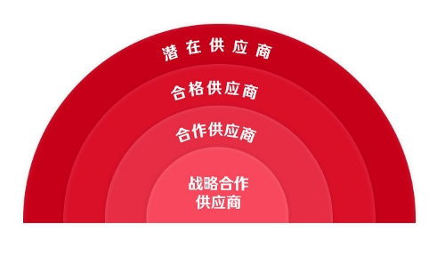 根據合作不同階段,我們把供應商分為潛在供應商、合格供應商、合作供應商、戰略合作供應商。您的優異表現將會是我們戰略合作夥伴的首選。