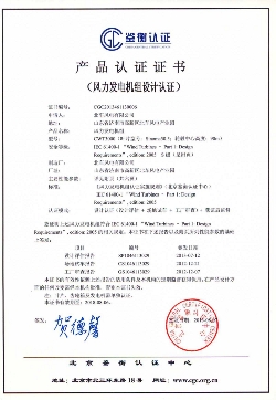 CWT type wind turbines designed and developed by company have been certified by German TüV-A design (the first domestic model has obtained the certification), China Classification Society(CCS) and China General Certification Center(CGC).