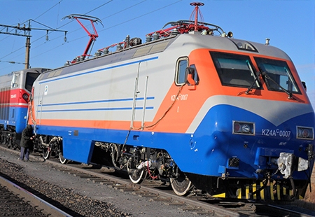 KZ4AC型電力機車為時速200km/h,是我國自主研發的滿足獨聯體的最高速度交流傳動客運電力機車。機車具有優越的耐寒性能,能適應零下50℃的運用環境。機車采用了整體承載結構車體,設兩端司機室;機械間采用中間走廊,設備為斜對稱原則布置,臥式主變壓器,獨立通風;機車采用網絡控製係統,分別設有兩個裝備IGBT模塊的主輔變流器,牽引電機為軸控形式。機車采中間低位推挽式牽引裝置,牽引電動機為架承式。