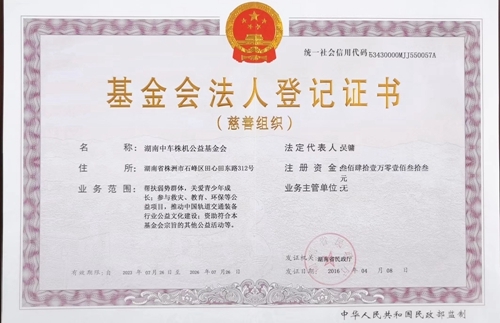 湖南中車株機公益基金會於2016年4月8日經湖南省民政廳批準設立,由中車株洲電力機車有限公司發起,是軌道交通領域首個非公募基金會。