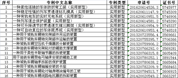公司實用新型專利16項